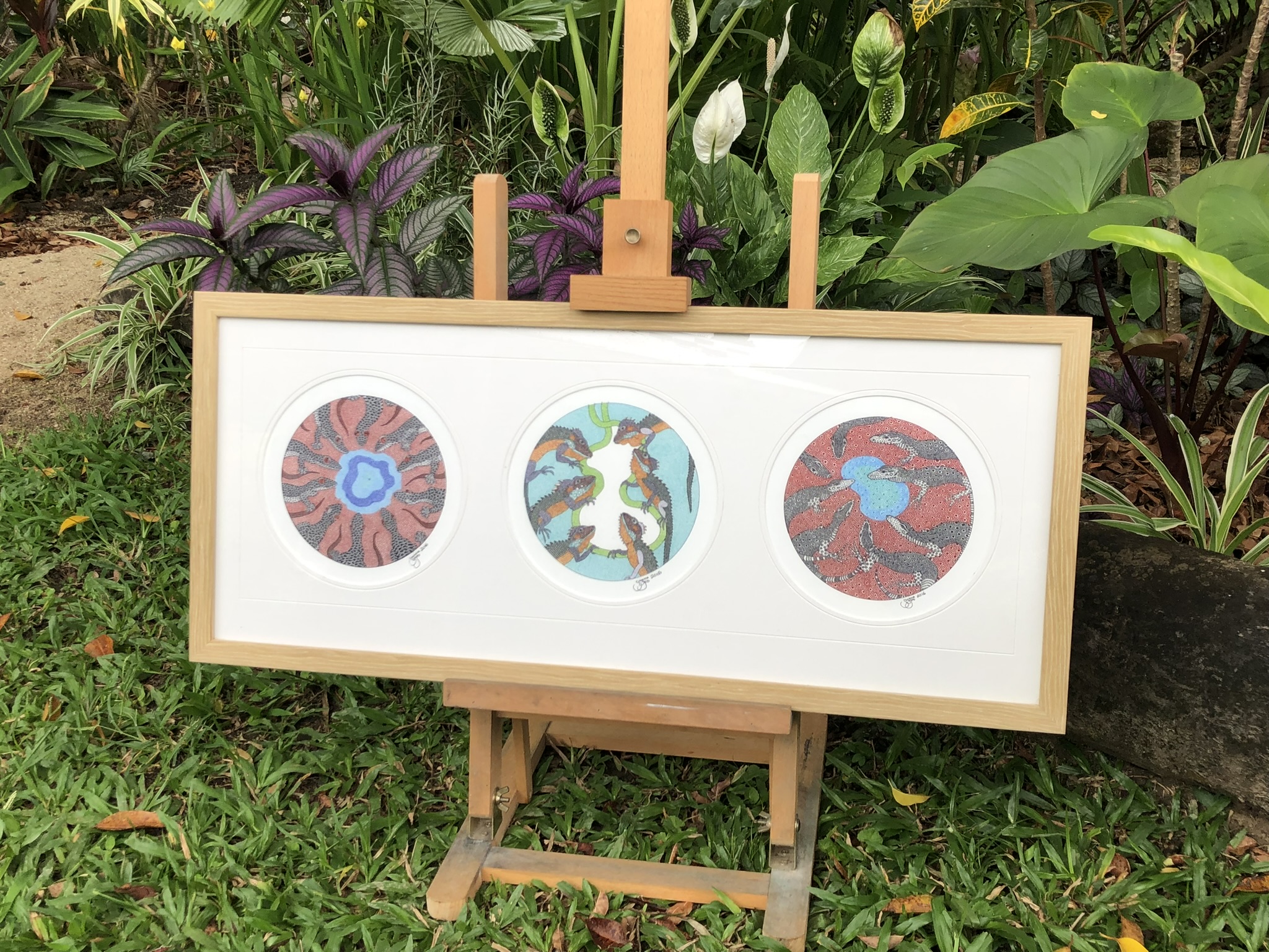 3 Reptile Mandalas Medium Ink Framed print Framed size 330×760mm
