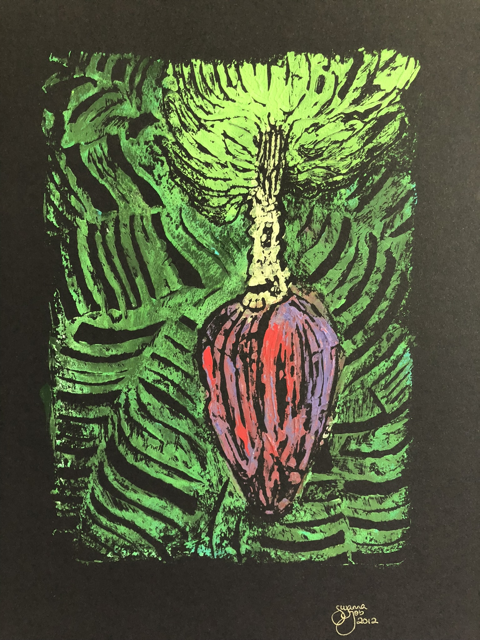 Banana Flower II Hand Painted Rubber Etch Unframed original Unframed size 160×210mm