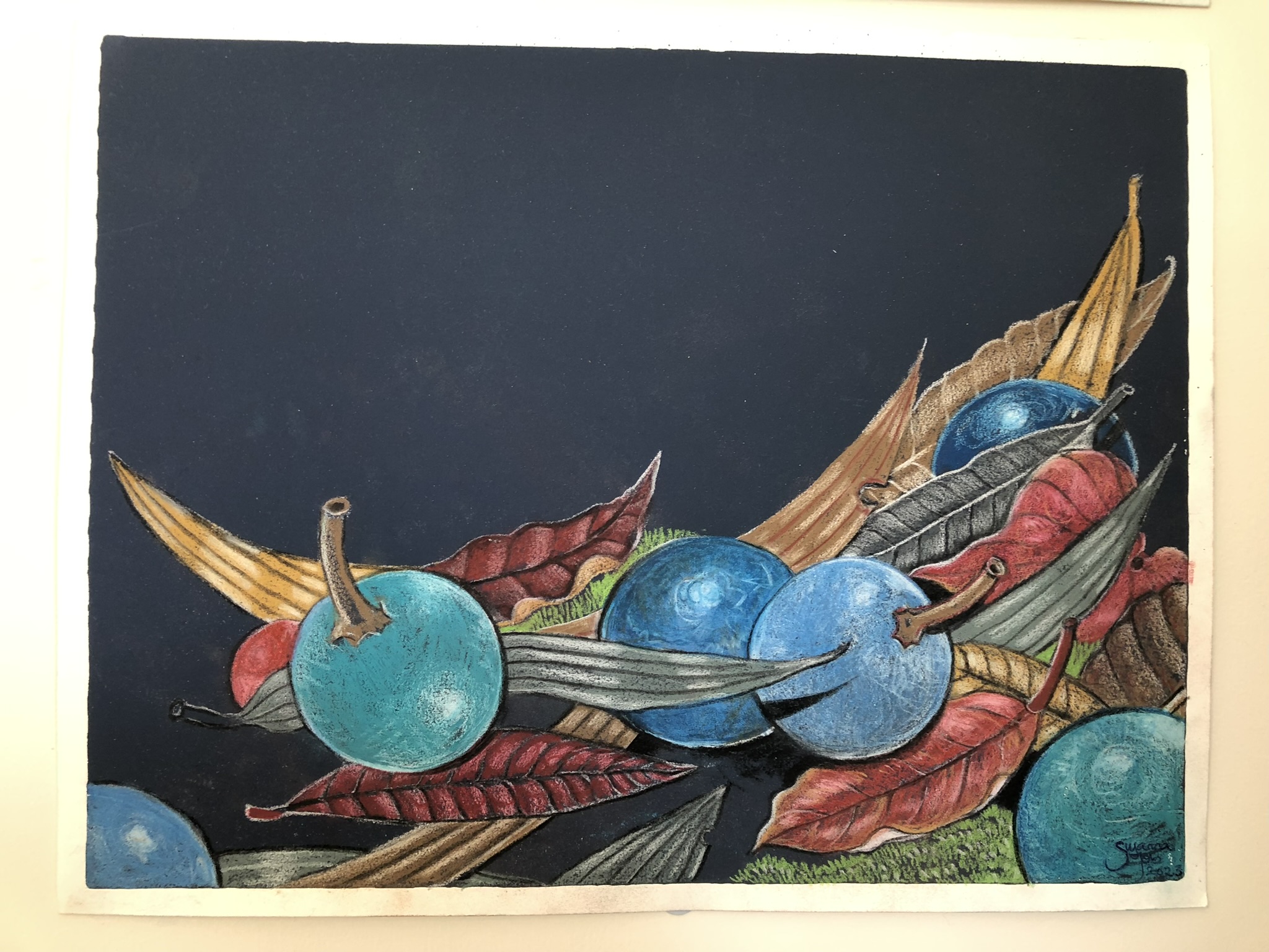 Blue Quandongs Pencil on Colorfix Paper Unframed original Unframed size A4mm New artwork