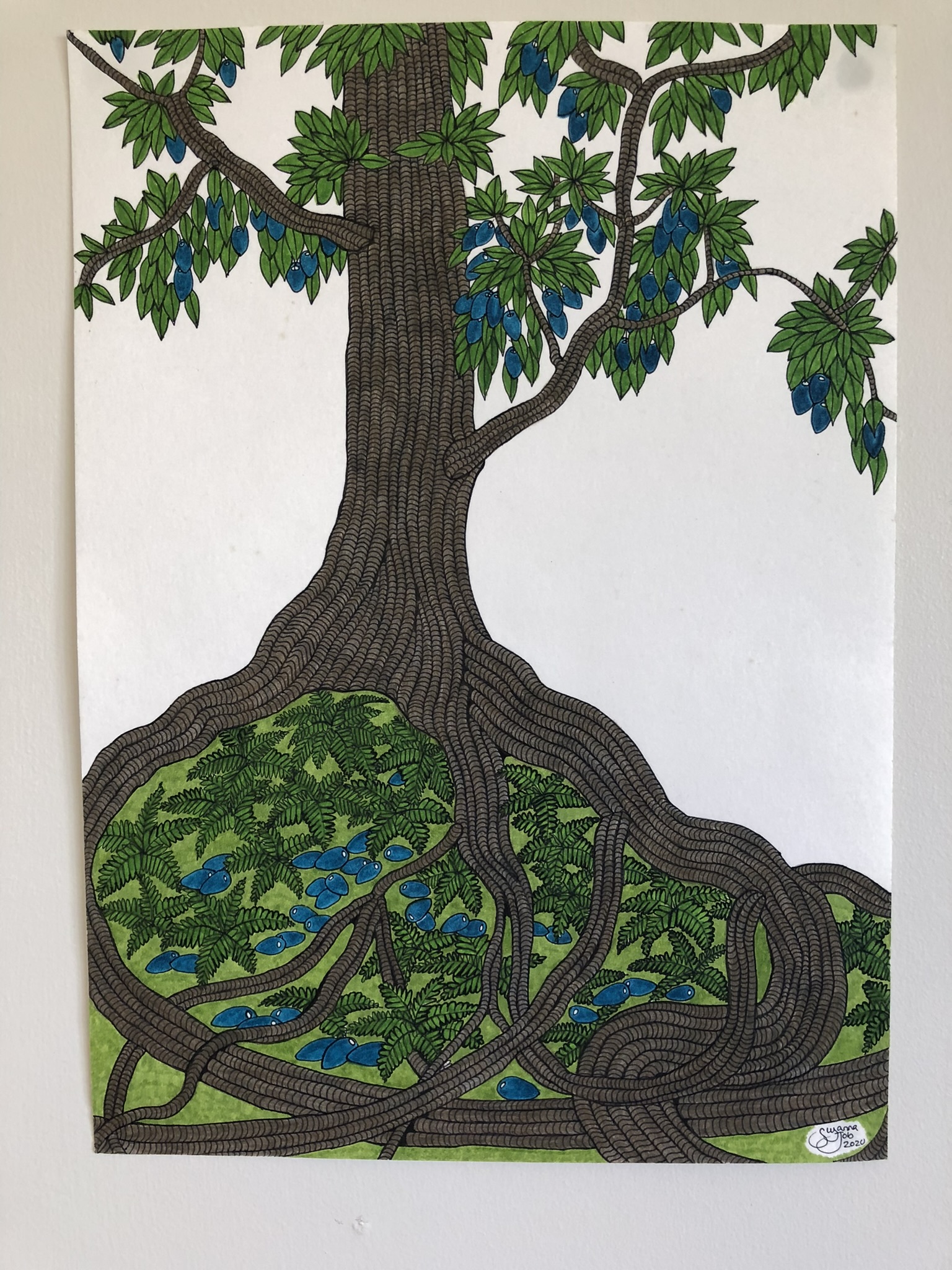 Cassowary Plum Ink on Paper Unframed original Unframed size A4mm
