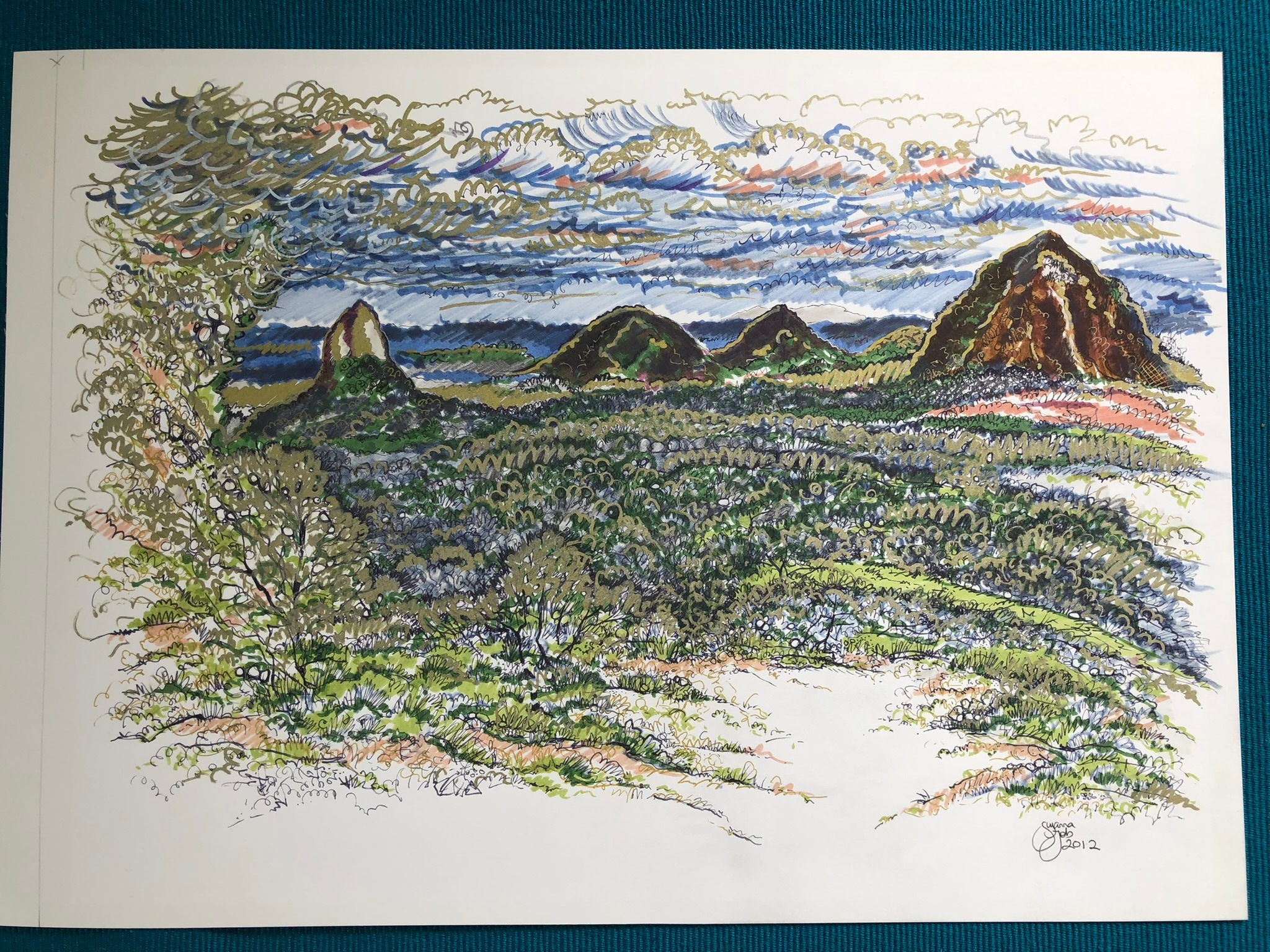 Glasshouse Mountain Ink on Paper Unframed original Unframed size 420×300mm