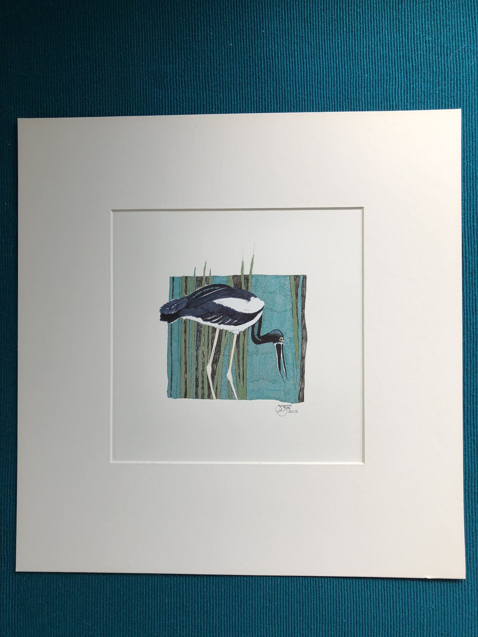 Jabiru II Hand-Coloured Rubber Etching Unframed original Unframed size 150×160mm