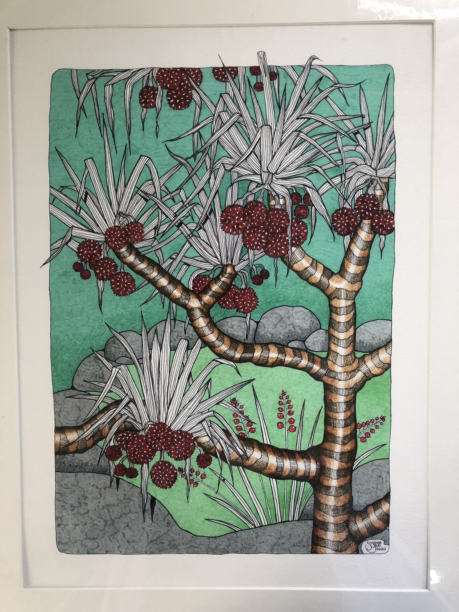 Pandanus Amongst Boulders Ink Unframed print Unframed size 400×510mm Matted/Shrinkwrapped