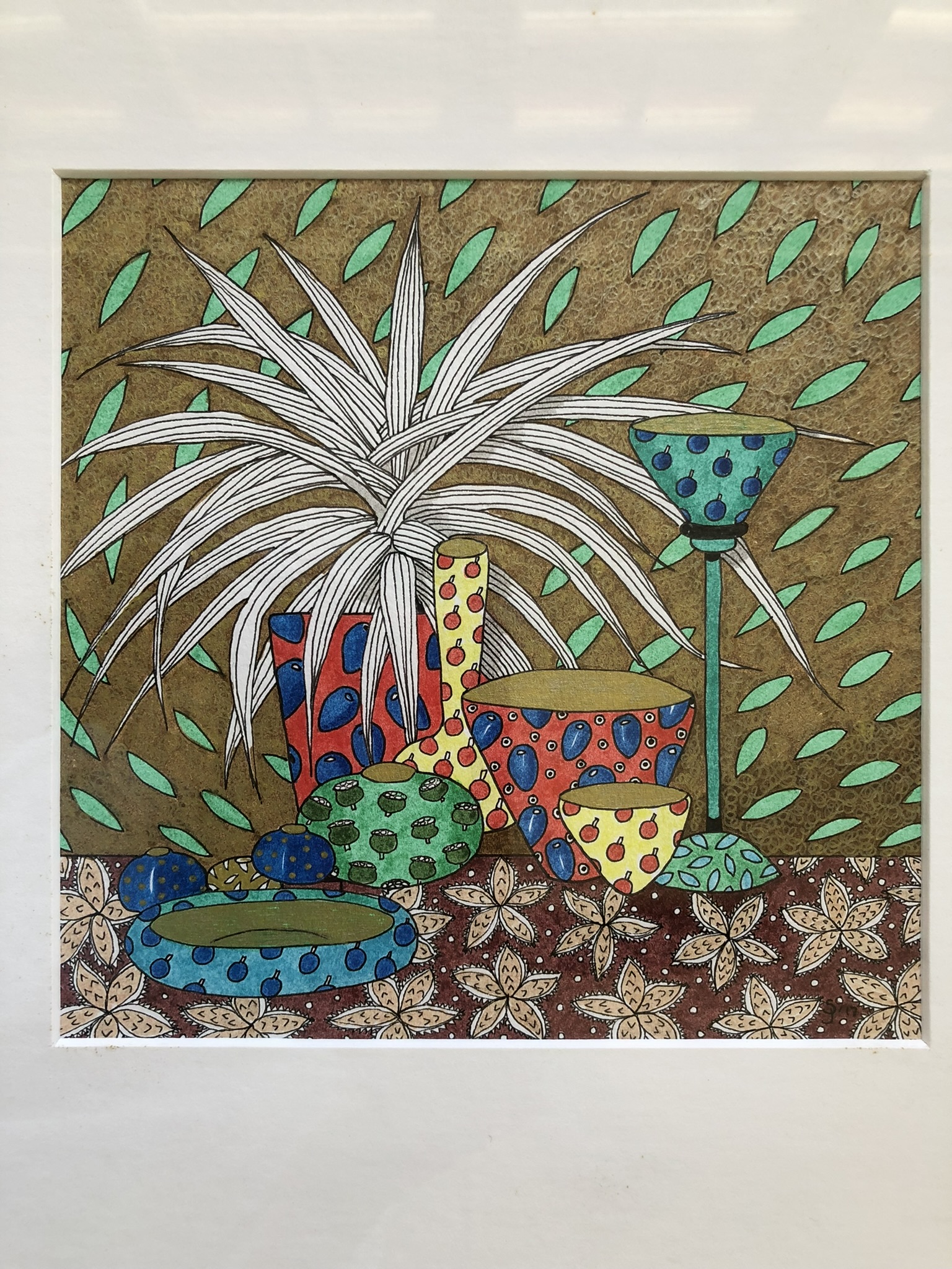 Rainforest Fruits Still Life I Ink on Paper Framed original drawing Framed size 330×320mm