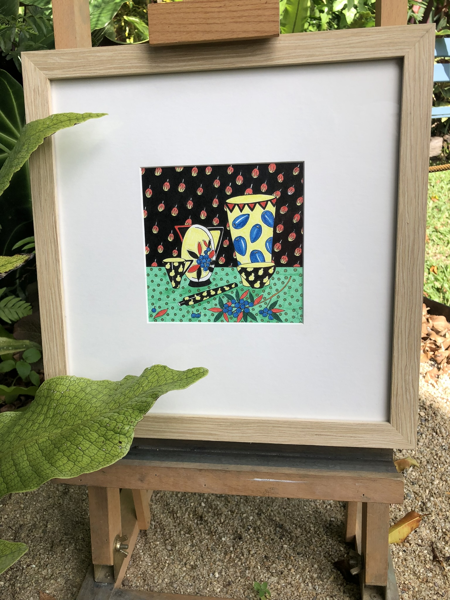 Rainforest Fruits Still Life V Ink on Paper Framed original drawing Framed size 330×325mm