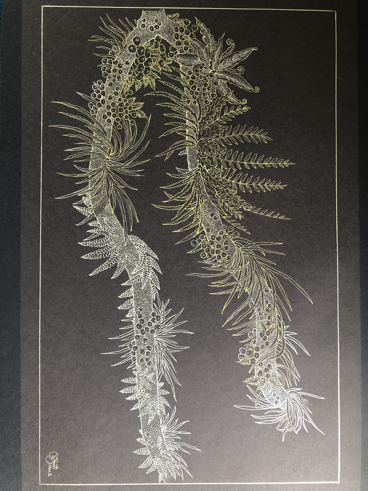 Silver & Gold Branch Ink Unframed original Unframed size 260×400mm