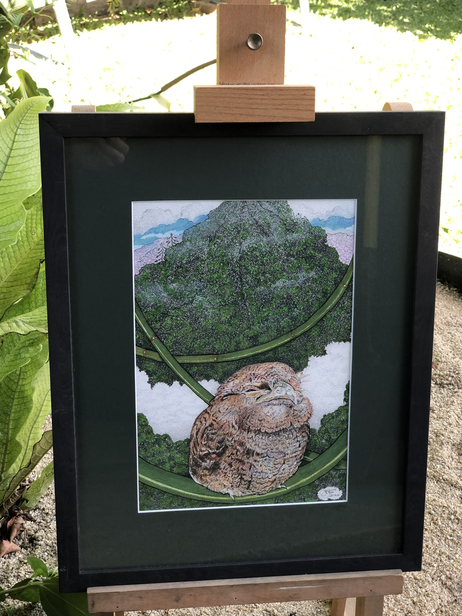 Tawny Frogmouth Pencil & Ink on Paper Framed original drawing Framed size 345×435mm